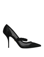 Dolce & Gabbana Black Mesh Mary Jane Crystal Heel Pump Shoes