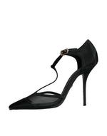 Dolce & Gabbana Black Mesh T-strap Stiletto High Heels Shoes