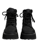 Dolce & Gabbana Black Padded Mid Calf Lace Up Boots Shoes