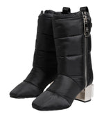 Dolce & Gabbana Black Padded Mid Calf Logo Heel Boots Shoes