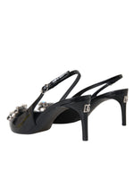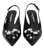 Dolce & Gabbana Black Patent Leather Crystal Slingback Shoes