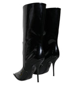 Dolce & Gabbana Black Patent Leather Mid Calf Boots Shoes