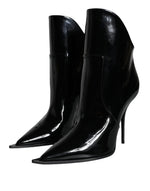 Dolce & Gabbana Black Patent Leather Pointed Ankle Boots Shoes
