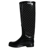 Dolce & Gabbana Black Polka Dot Rubber Knee High Boots Shoes