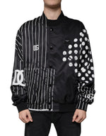 Dolce & Gabbana Black Polka Dot Stripe Nylon Bomber Jacket
