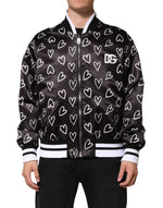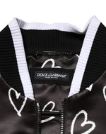 Dolce & Gabbana Black Polyester Heart Print Bomber Jacket
