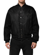 Dolce & Gabbana Black Polyester Logo Plaque Bomber Jacket
