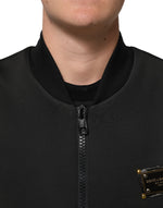 Dolce & Gabbana Black Polyester Logo Plaque Bomber Jacket