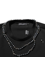 Dolce & Gabbana Black Polyester Necklace Embellished T-shirt