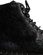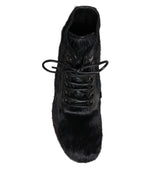Dolce & Gabbana Black Pony Style Leather Mid Calf Boots Shoes