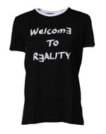 Dolce & Gabbana Black Printed Round Neck Top Cotton T-shirt