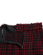 Dolce & Gabbana Black Red Cotton High Waist Tartan Tweed Mini Skirt