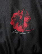 Dolce & Gabbana Black Red Floral Silk Bomber Blouson Jacket