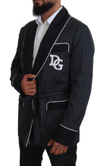Dolce & Gabbana Black Robe Striped DG Patch Jacket Men Blazer