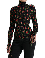 Dolce & Gabbana Black Rose Print Turtle Neck Blouse Top