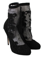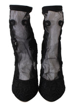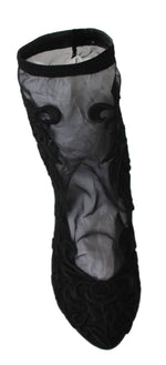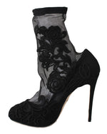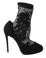 Dolce & Gabbana Black Roses Stilettos Booties Socks Shoes