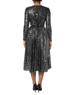 Dolce & Gabbana Black Sequined Long Sleeves Midi A-line Dress