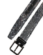 Dolce & Gabbana Black Sequins Silver Metal Logo Buckle Belt