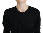 Dolce & Gabbana Black Sheath Midi Gown Wool Wrap Dress