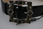 Dolce & Gabbana Black Shiny Leather Crystal Logo Buckle Belt