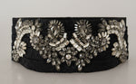 Dolce & Gabbana Black Silk Brass Crystal Embellished Waist Belt