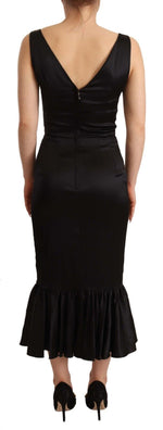 Dolce & Gabbana Black Silk Stretch Sheath Mermaid Midi Dress