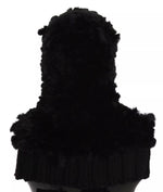 Dolce & Gabbana Black Silver Fox Fur Cashmere Hooded Scarf