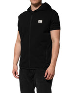 Dolce & Gabbana Black Sleeveless Hooded Logo Plaque Jacket