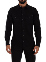 Dolce & Gabbana Black Slim Cotton Denim Stretch Shirt