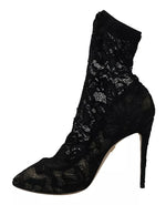 Dolce & Gabbana Black Stretch Socks Taormina Lace Boots Shoes