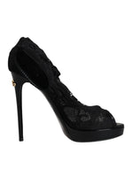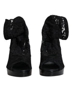 Dolce & Gabbana Black Stretch Taormina Lace Boots Shoes