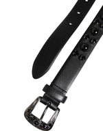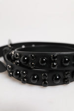 Dolce & Gabbana Black Studded Leather Metal Logo Buckle Belt