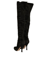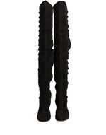 Dolce & Gabbana Black Suede Heels Knee High Boots Shoes