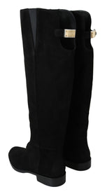 Dolce & Gabbana Black Suede Knee High Flat Boots Shoes