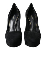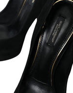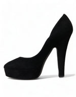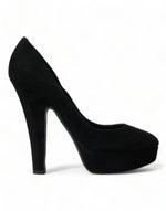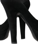 Dolce & Gabbana Black Suede Leather Platform Heel Pumps Shoes