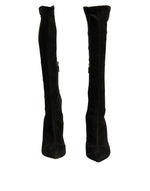 Dolce & Gabbana Black Suede Stiletto Knee High Boots Shoes