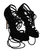 Dolce & Gabbana Black Suede Strap Stilettos Shoes Sandals