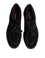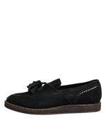Dolce & Gabbana Black Suede Tassel Embellished Loafers Shoes
