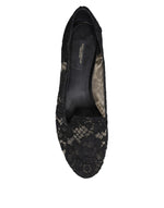 Dolce & Gabbana Black Taormina Lace Slip On Flats Shoes