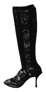 Dolce & Gabbana Black Taormina Lace Socks Boots Shoes Pumps