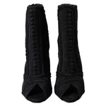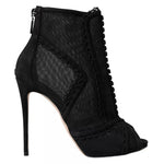 Dolce & Gabbana Black Tulle Stiletto Heels Short Boots Shoes