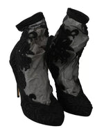 Dolce & Gabbana Black Tulle Stretch Floral Booties Shoes