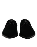 Dolce & Gabbana Black Velvet Cotton Lace Up Derby Shoes