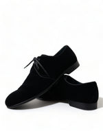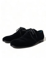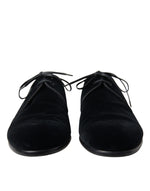 Dolce & Gabbana Black Velvet Lace Up Formal Derby Dress Shoes