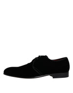 Dolce & Gabbana Black Velvet Leather Lace Up Derby Shoes