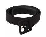 Dolce & Gabbana Black Velvet Leather Logo Waist Buckle Belt
