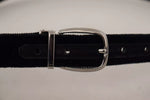 Dolce & Gabbana Black Velvet Silver Tone Metal Logo Buckle Belt