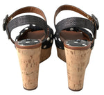 Dolce & Gabbana Black Wedges Polka Dotted Ankle Strap Shoes Sandals
