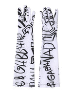 Dolce & Gabbana Black White DG Logo Elbow Length Mitten Gloves