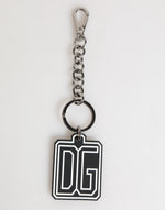 Dolce & Gabbana Black White DG Rubber Logo Silver Men Keychain Keyring